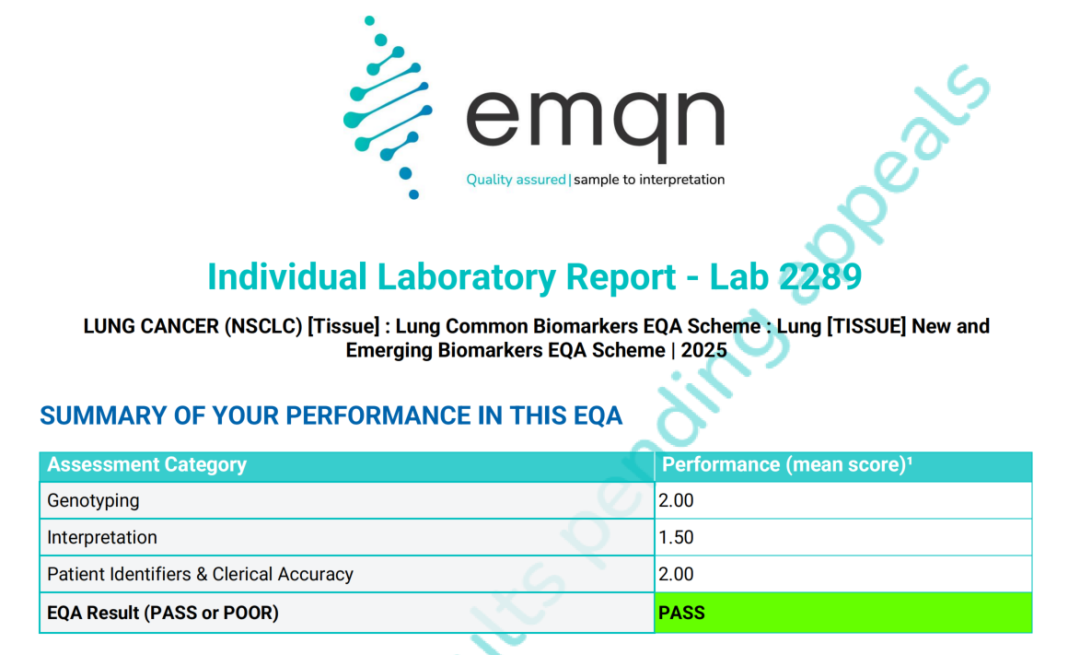 满分通过 EMQN Lung cancer(NSCLC)[Tissue]