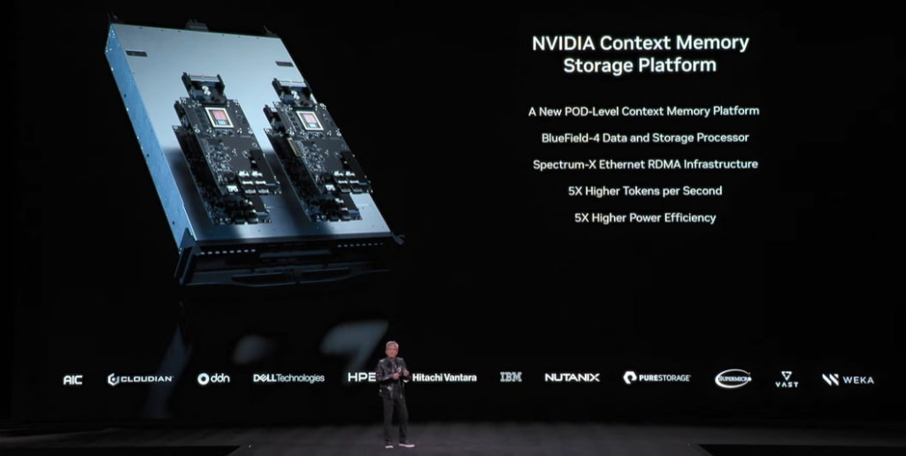 今日之星:黑色机架式 NVIDIA ICMS(推理上下文内存存储)。图片来源:NVIDIA