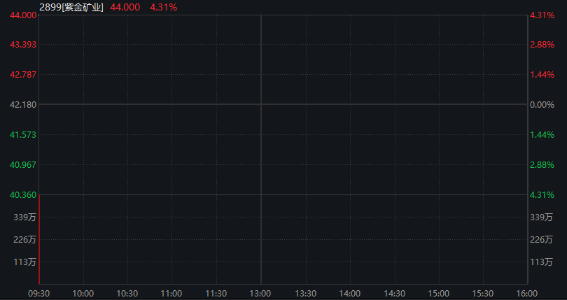 紫金矿业高开4.31%,此前公告称将收购Allied Gold Corporation 100%股权。