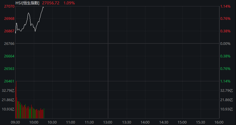 恒指高开0.36%,恒生科技指数涨0.16%。哔哩哔哩涨1.5%,比亚迪股份、蔚来涨1%,阿里巴巴涨近1%。
