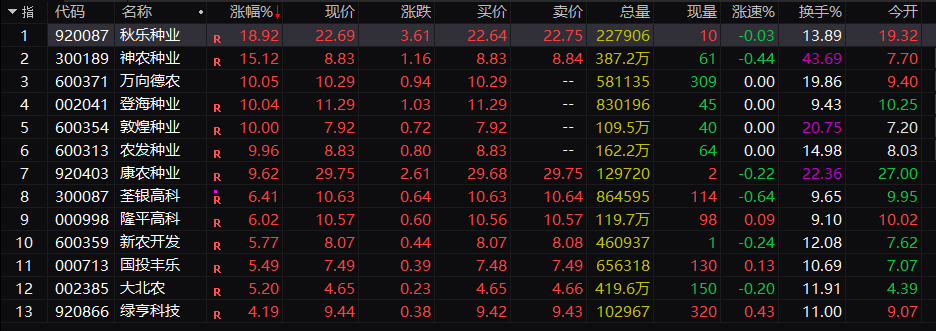 风格轮动到农业板块!