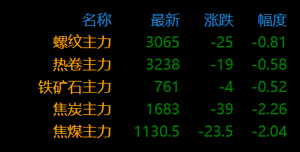 周五夜盘螺纹钢盘面受铁矿石及双焦补跌,成本拖累成材走势