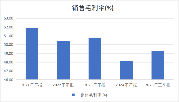 公司毛利率长期维持在50%上下,几乎没有大的波动。