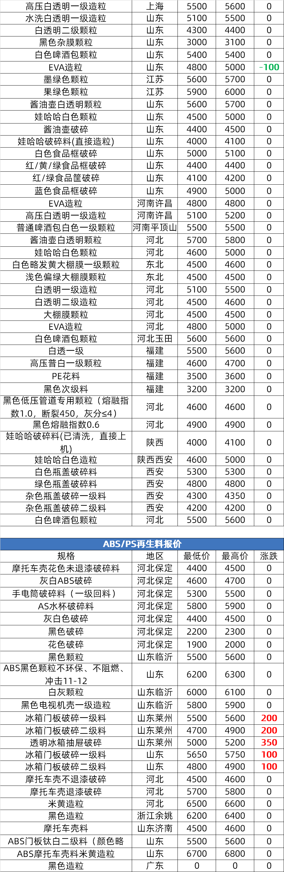 环比下降的商品共有7种,跌幅前3的产品分别为LLDPE(-1.66%)、LDPE(-1.31%)、PVC(-1.08%)。