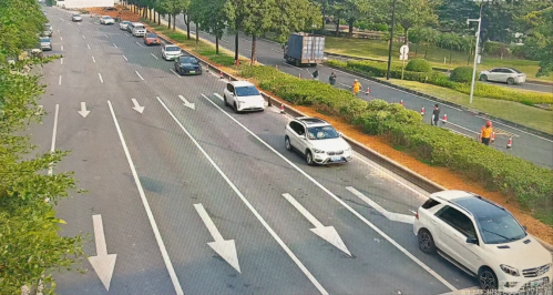 作为全新规划的中央商务区,在“边建设、边开通”的模式下,建设单位未同步对交通标志、标线及信号灯等安全与管理设施开展精细化协同设计,导致路口通行指引缺失、渠化标线冲突、信号控制逻辑受阻等问题,不仅降低通行效率,更带来一定的安全与秩序隐患。