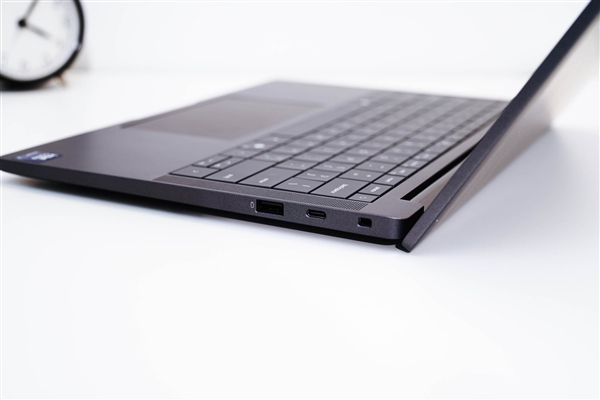 戴尔Pro 14 Premium机身外壳采用了90%回收镁材质打造,因此是一款环保产品。其表面采用阳极氧化工艺,有着细腻的触摸手感。而且这种材质有助于降低整个机身的配重,所以它的单机重量仅为1.14kg,在目前的14英寸笔记本里应该是相对非常轻薄的产品之一了。