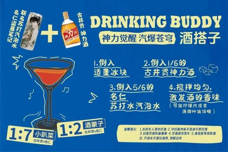 与古井贡神力酒的联动,是名仁跨界年轻化、深化酒水融合的落地动作。为了满足个性化需求,名仁与古井贡酒还联合专研了三种特色调配方式:
